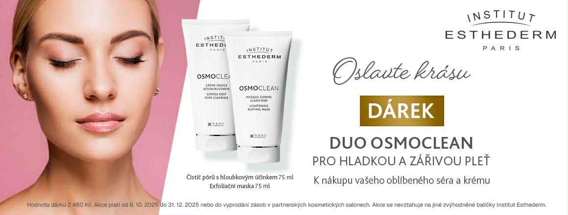 Dopřejte své pleti tu nejjemnější a nejúčinnější péči. K nákupu vašeho jakéhokoliv oblíbeného séra a krému Institut Esthederm nyní získáte luxusní DUO OSMOCLEAN jako dárek.