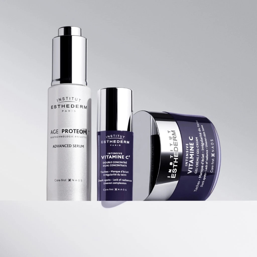 Dvojitý koncentrát se dvěma formami vitamínu C – čistým vitamínem C (10% kyselina askorbová) pro okamžitou účinnost a provitamínem C (2% askorbyl glukosid) pro dlouhotrvající účinek s postupným uvolňováním, v ultra svěžím a účinném séru, které: